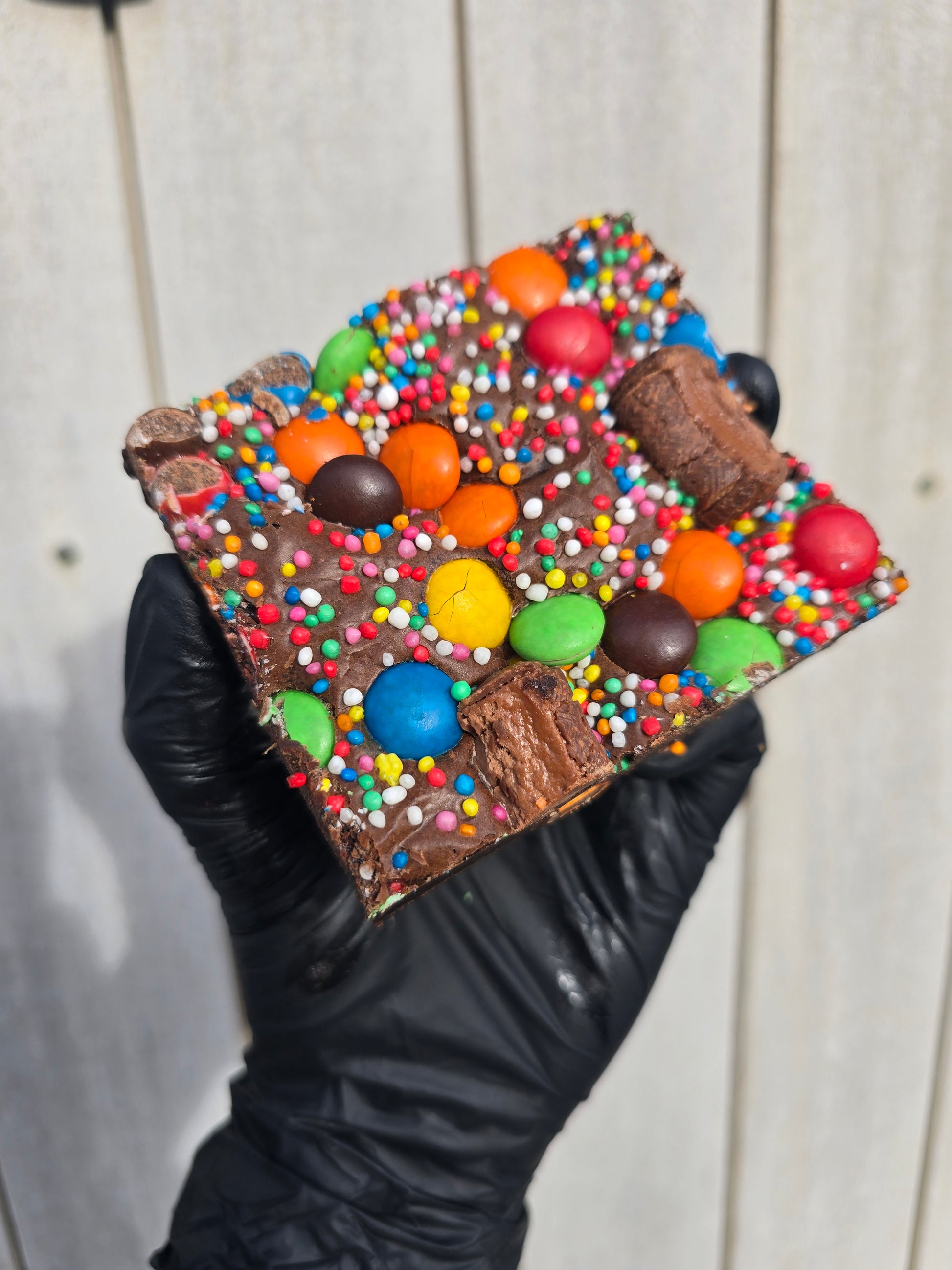 Our Cosmic Brownie is here! A rich, fudgy brownie base loaded with crunchy M&M’s, soft chunks of Milky Way chocolate, and topped with a colourful sprinkle explosion. Perfect for anyone who loves their brownies bold, chocolatey, and fun.